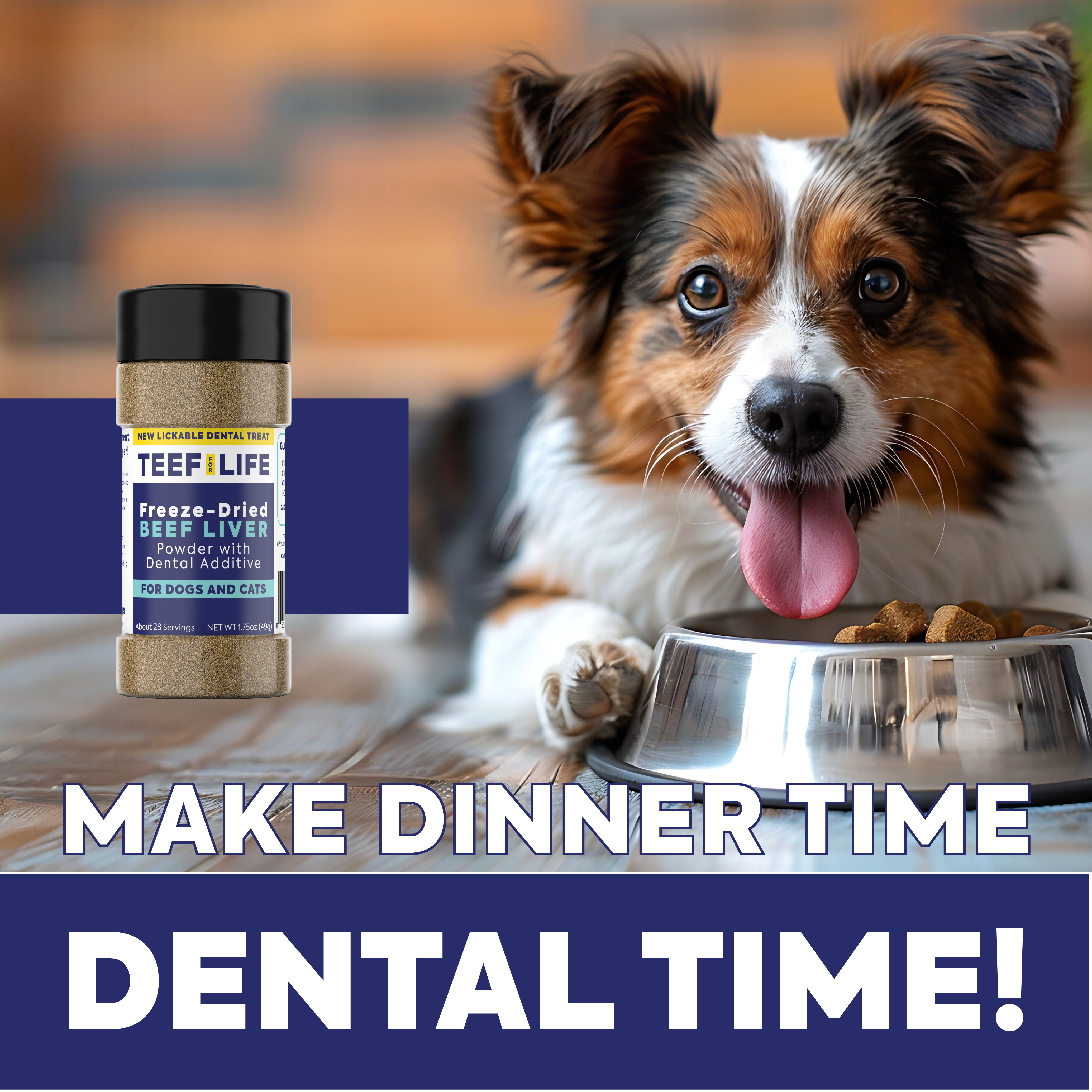 Finally, a tasty treat with dental benefits! TEEF's lickable treat powder is a delicious addition to any meal, treat, lick pad, toy... anything that your pet enjoys! Just a little sprinkle of our premium freeze-dried protein powder + Protektin42K will provide easy, enjoyable daily dental support. Each bottle contains 3g of Protektin42K, the same amount as our 30-day prebiotic dental powder (concentrate)!